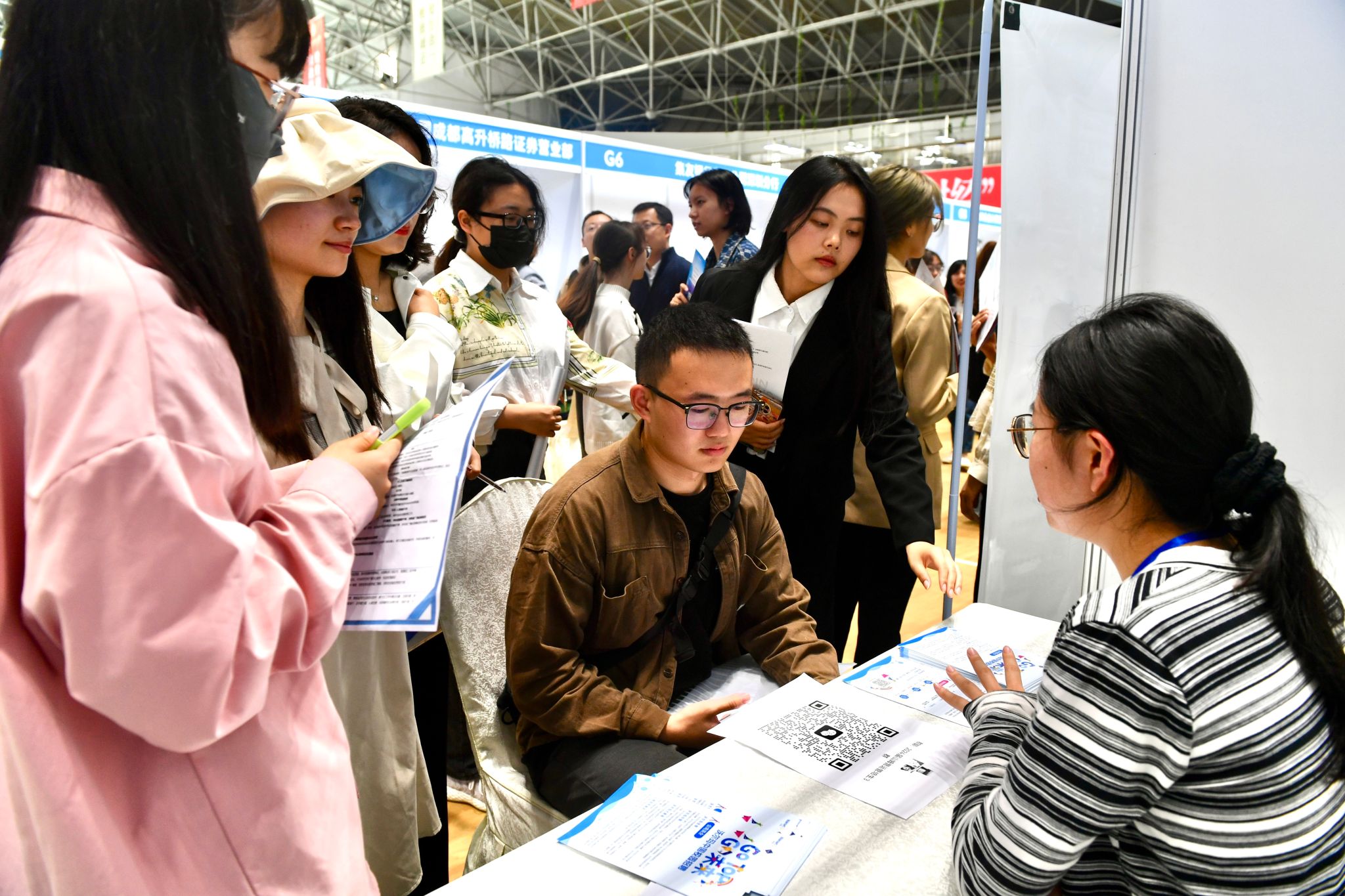 3月29日下午,西南财经大学2024届毕业生春季大型双选会在柳林校区体育馆举办。来自全国各地的近200家用人单位来校选贤纳士,提供就业岗位5000余个,4000余名学生参与了现场招聘。