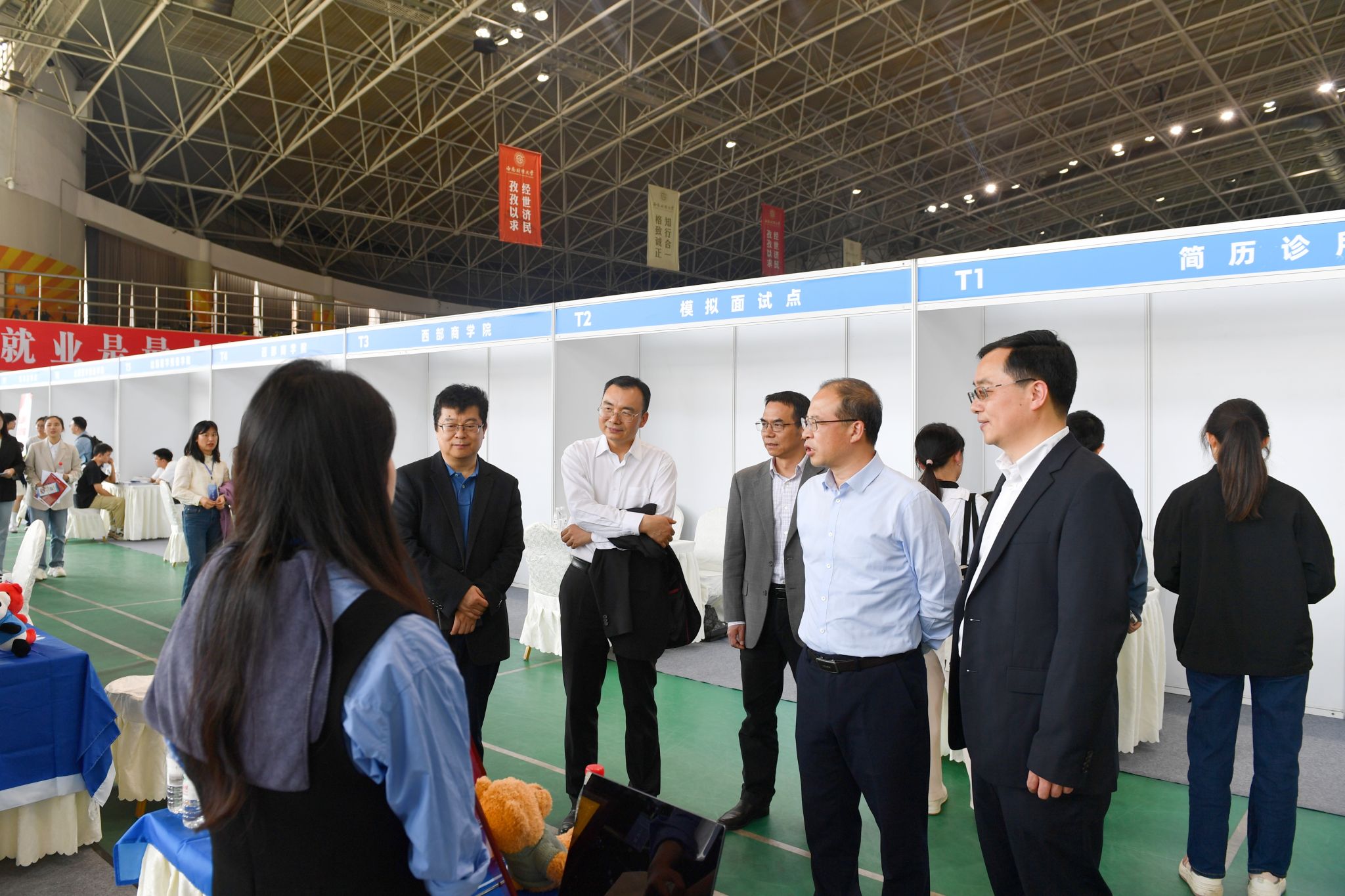 学校党委副书记、校长李永强,党委副书记、纪委书记孙殿明,党委常委、副校长李志生、马永强来到双选会现场,与用人单位和师生亲切交流,了解用人单位的人才需求,听取其对我校人才培养、实习实践、校企合作等方面的意见建议,并亲切询问参会学生的求职进展,勉励其树立求职信心,积极投递简历。