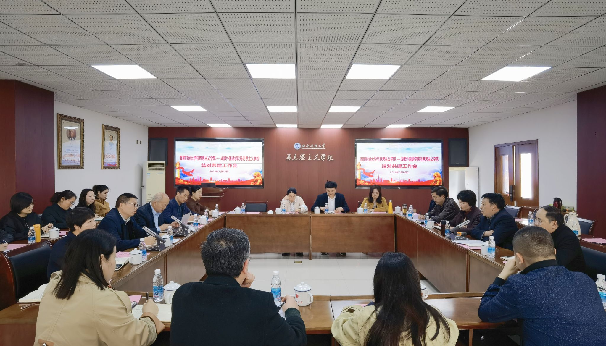 为深入贯彻习近平总书记关于思想政治理论课建设的重要论述,认真落实中共四川省委教育工委、四川省教育厅关于开展四川省高校马克思主义学院结对共建行动的文件精神,进一步推进共建单位结对工作,3月28日,学校与成都外国语学院开展马克思主义学院结对共建工作会。学校党委副书记谢红、成都外国语学院党委书记杨继瑞出席会议,马克思主义学院院长唐晓勇主持会议。