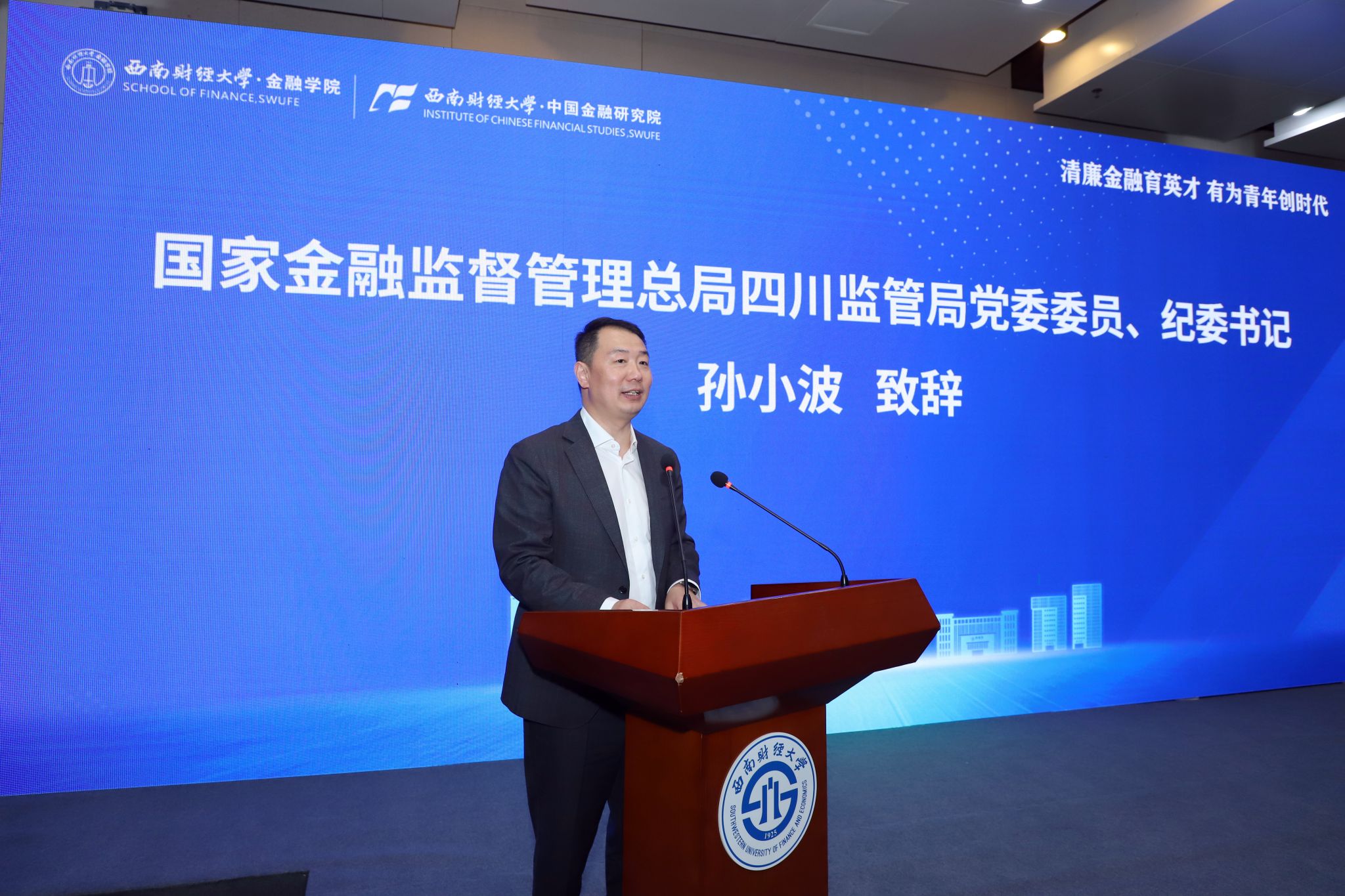 孙小波在致辞中表示,金融是国民经济的血脉,是国家核心竞争力的重要组成部分。加强清廉金融文化建设是净化行业风气、防治金融腐败的重要举措,也是防范金融风险、助推经济金融健康发展的关键。四川监管局与西南财经大学合作推进清廉金融进高校活动取得丰硕成果,清廉金融建设是金融行业迈向新征程的重要一步,希望通过持续深度合作、共同培养出遵守规章制度、严格自我要求的高素质金融从业人员,推动金融行业生态持续向好发展,为建设金融强国、推进中国式现代化贡献力量。