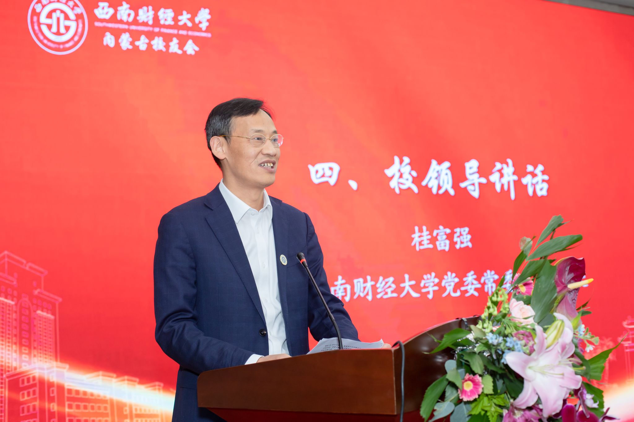 桂富强向与会校友转达了学校党委书记赵建军,党委副书记、校长李永强的亲切问候,向内蒙古校友会的成立表示热烈祝贺。他指出,在推动内蒙古高质量发展进程中,一批又一批西财学子把青春的答卷写在辽阔的草原上,把“经世济民、孜孜以求”的西财精神印刻在祖国北疆大地。他强调,内蒙古校友会的成立将进一步凝聚校友情感、汇聚校友力量、成就校友发展,也将积极助力内蒙古经济社会高质量发展。桂富强向广大校友详细介绍了学校近年来改革发展情况、“双一流”建设取得的重要成果以及学校百年校庆筹备工作推进情况。他寄语内蒙古校友会不断加强自身建设、持续推进自身发展,与母校各项事业高质量发展同频共振,共同建功新时代,奋进新征程。