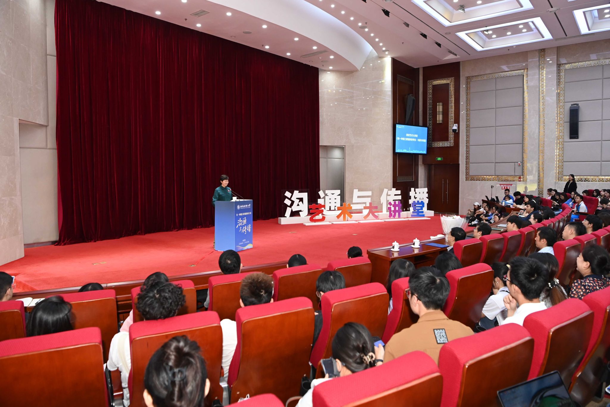 5月11日下午,中央广播电视总台播音指导、著名电视节目主持人敬一丹应邀来校,做客“西财艺术大讲堂”,以《有一种能力跨越你的专业:沟通与传播》为题作文化素质讲座。党委书记赵建军出席讲座,党委副书记、纪委书记孙殿明参加并主持讲座。400余名师生到场聆听。