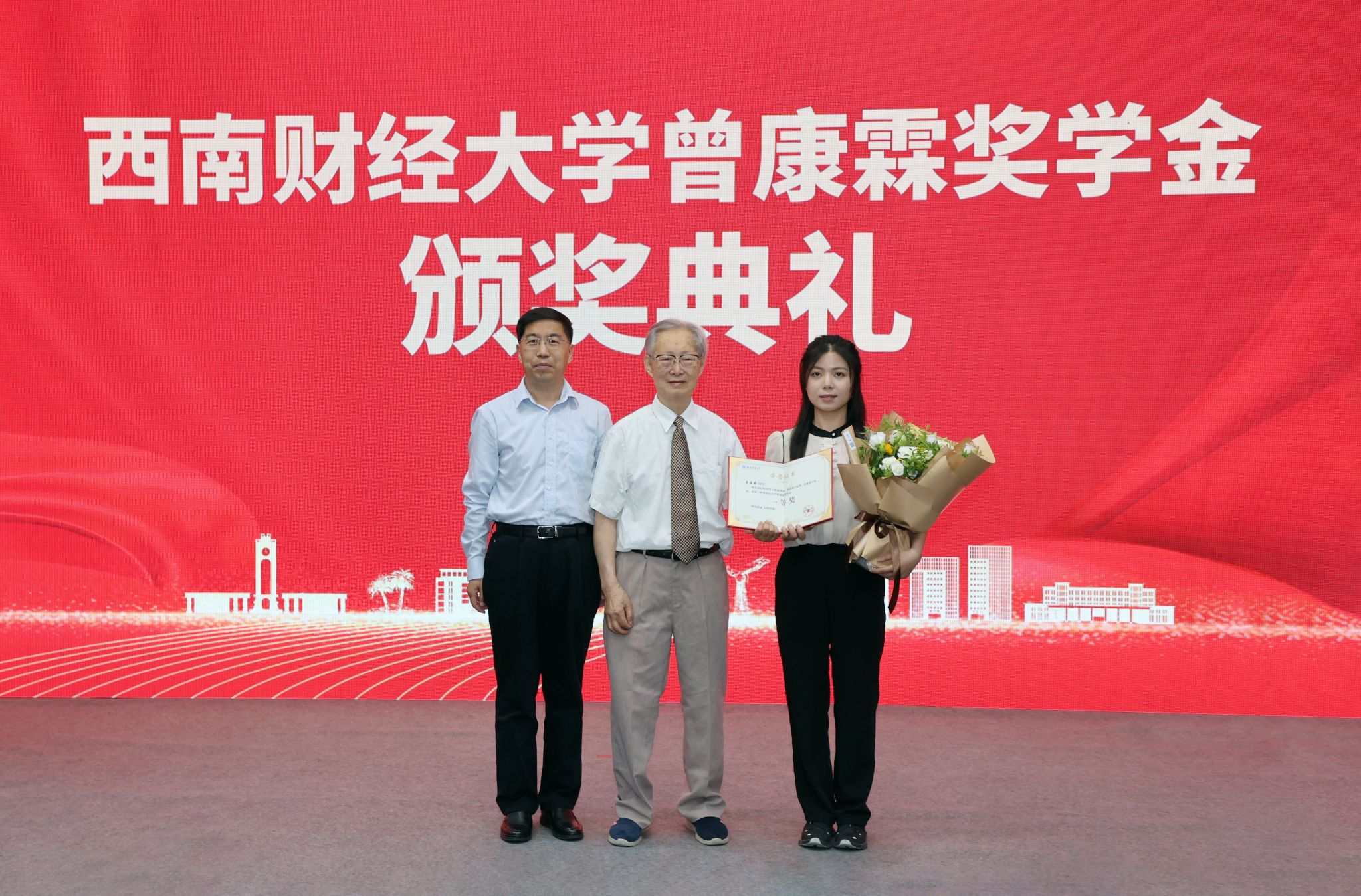 2013年,曾康霖教授被授予刘鸿儒金融教育基金会“中国金融学科终身成就奖”, 先生把自己所得100万奖金全部捐献设立学校首个以教授名义命名的学生奖学金——“曾康霖奖学金”,旨在激励广大西财学子静心治学、潜心问道。截至2024年,已有73名学子获此殊荣。第九届曾康霖奖学金共评选产生十项获奖成果,其中一等奖1项,二等奖2项,三等奖7项,获奖同学涵盖金融学院、中国金融研究院,会计学院,统计学院,工商管理学院,财政税务学院,国际商学院,经济与管理研究院,数学学院等8个学院(研究院)。