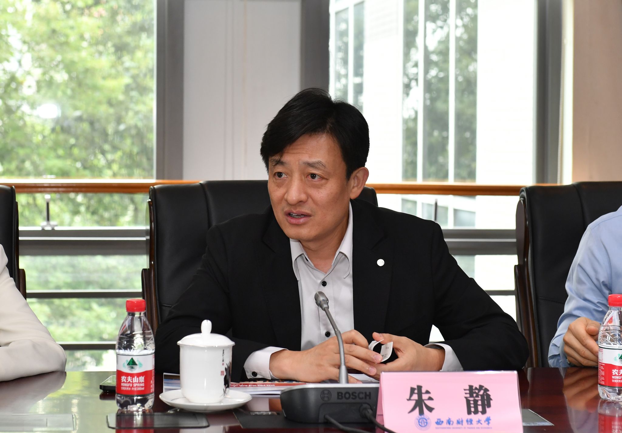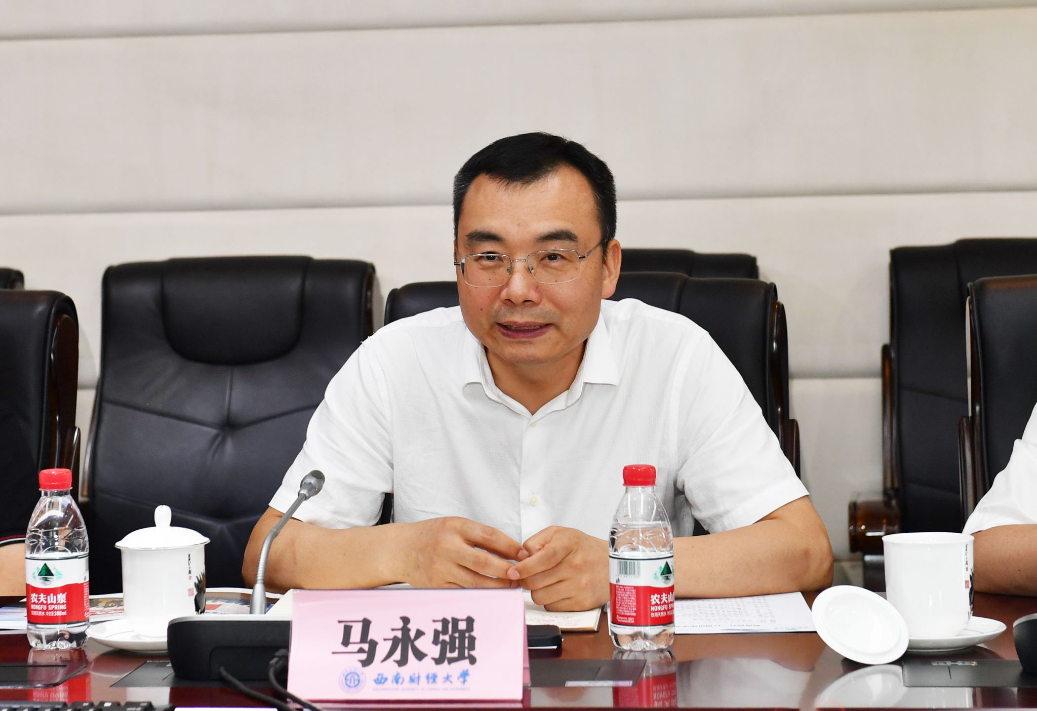 马永强对朱静一行表示欢迎,简要介绍了学校历史沿革、基本概况与办学特色,重点介绍了“新财经”人才培养实践以及校银合作情况。他表示,顺应现代科技对高等教育的新要求,学校积极布局金融科技、数字经济、人工智能、区块链等新兴交叉学科,充分发挥国家金融、经济、管理部门高水平人才培养基地示范作用,持续为教育强国、金融强国建设贡献西财力量。招商银行在推进“金融科技银行”建设过程中积累了丰富实践经验,希望双方不断巩固和发展在学生就业与管培生培养、科学研究方面的合作,探索更多合作领域,实现校银合作双向赋能。