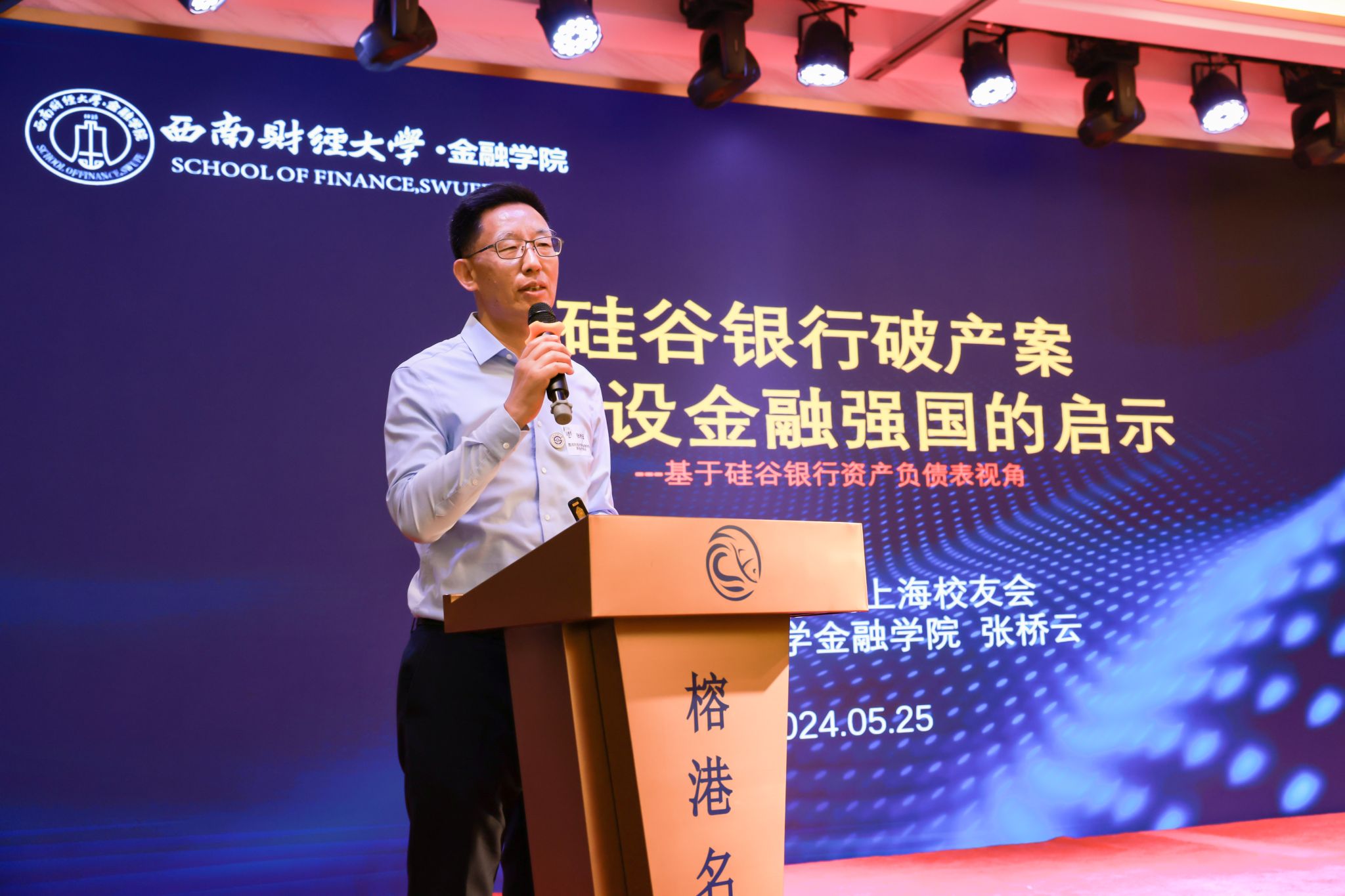 在与会校友、全球高校上海校友联盟及政府嘉宾的见证下,西财上海校友会合作委员会成立仪式及“全球高校上海校友联盟+四财”战略合作仪式顺利举行。未来将通过战略合作增强校友凝聚力,促进资源共享,共同推动各校校友会、各地方校友会向新向好发展。随后,姜明生代表西财上海校友会向母校赠礼,李永强接受赠礼。金融学院原执行院长张桥云教授作题为“美国硅谷银行破产案对建设金融强国启示”精彩讲座。