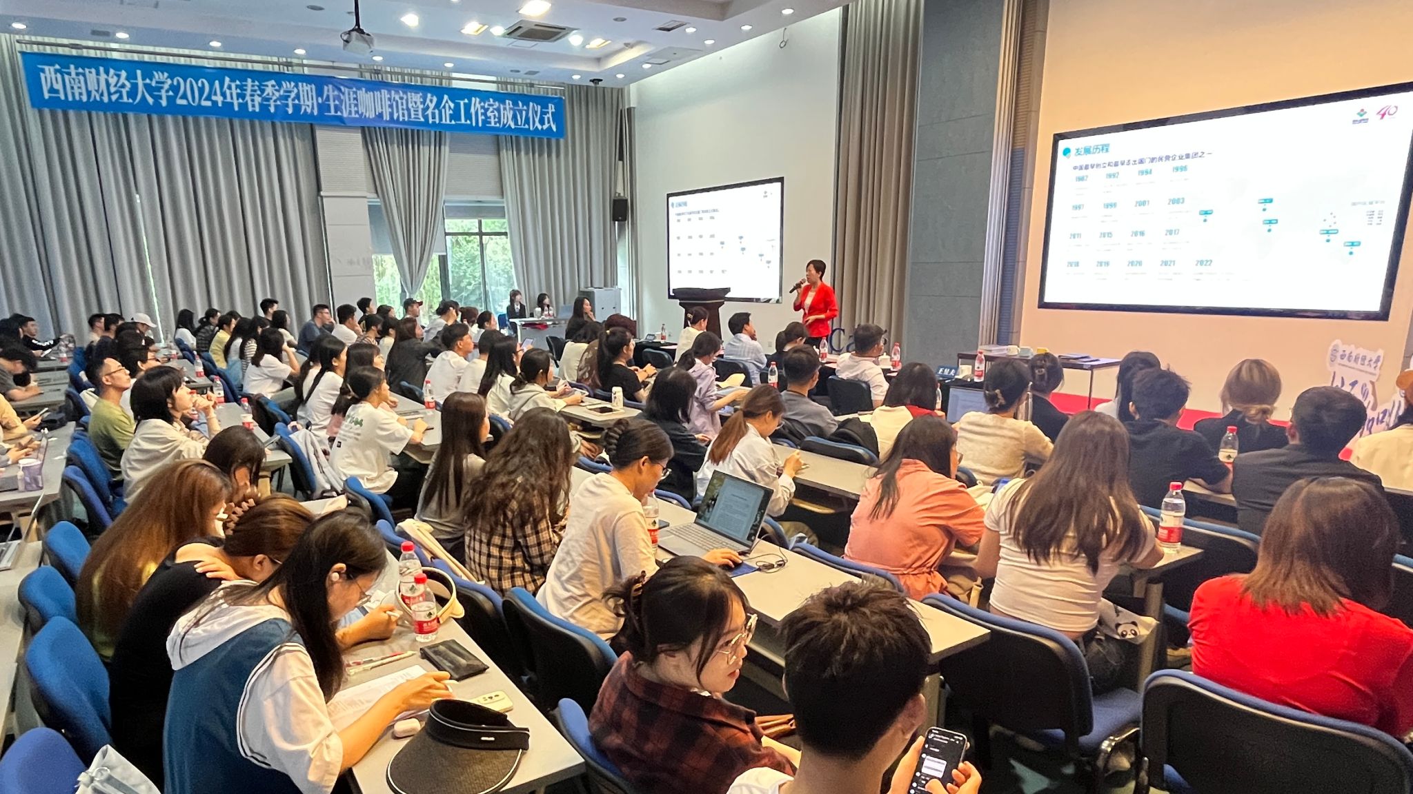 李永强和李建雄共同为“新希望集团工作室”揭牌。会前,杨芳、胡劲松出席了“生涯咖啡馆”活动,与同学们进行交流分享。