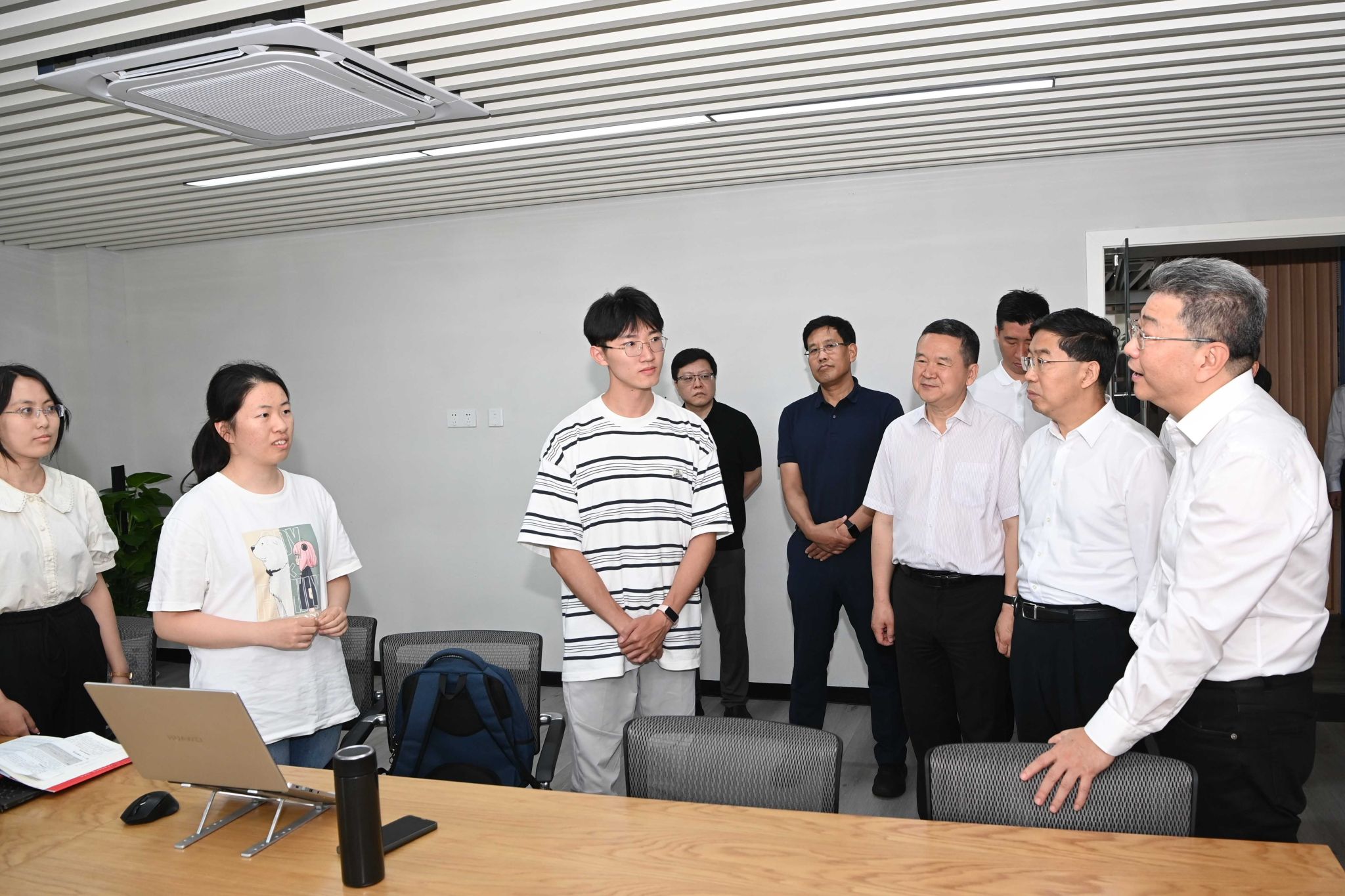 在习近平经济思想研究院,吴岩走进工作室,深入听取各研究团队在推进自主知识体系构建、新质生产力理论研究、优势学科建设、服务国家和区域重大战略等方面的工作进展与成效。