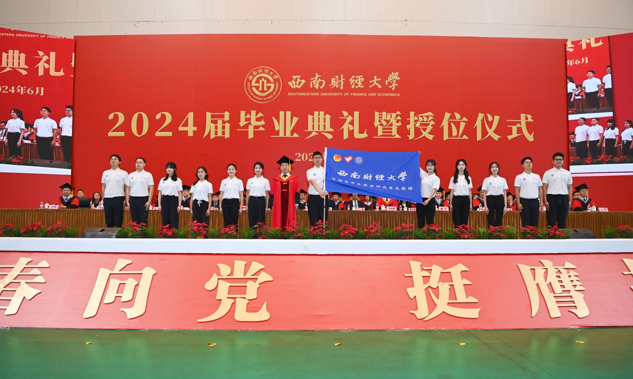 典礼在全体师生齐声高唱《西南财经大学校歌》中落下帷幕。