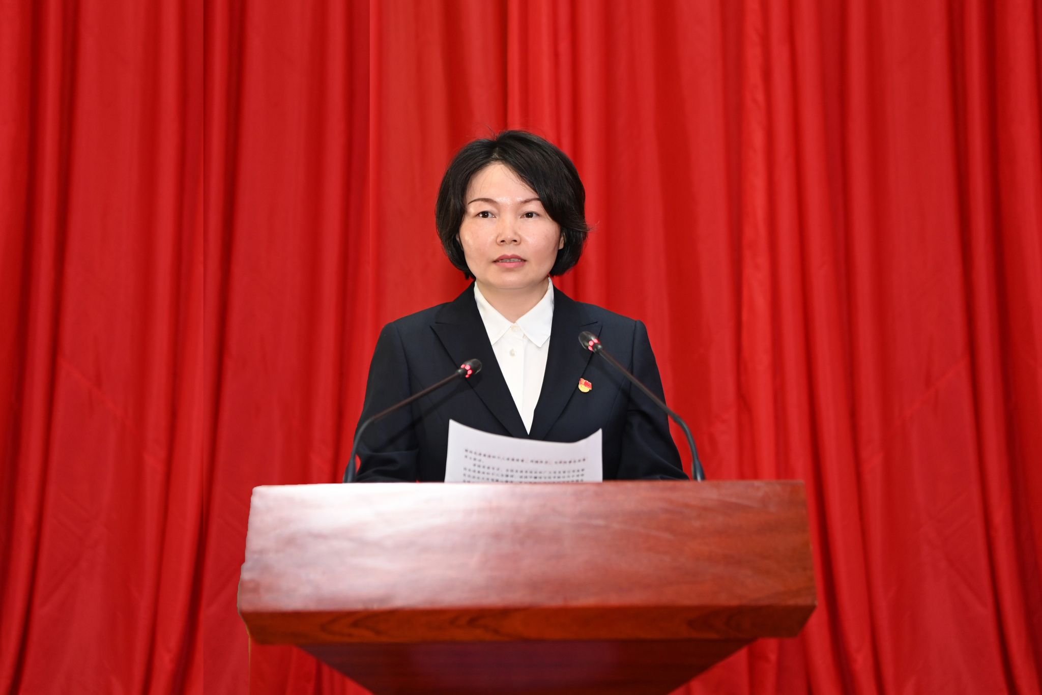 大会第二阶段,学校开展“廉洁铸魂强根本 挺膺奋进建新功”党纪学习教育主题党日活动。谢红主持。