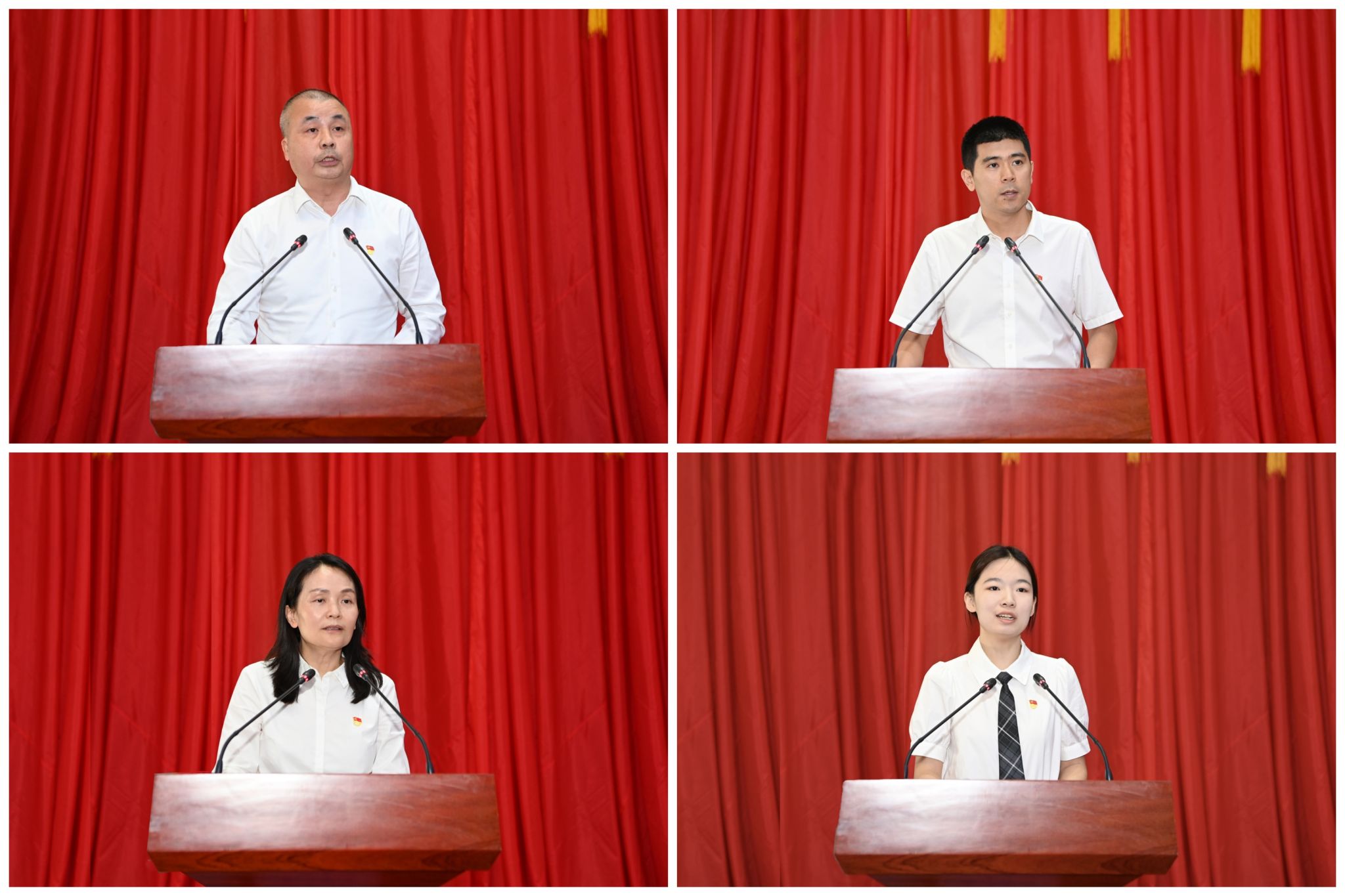 老党员代表侯德芳、二级纪委书记代表谭敏、青年教师党员代表李雪峰、青年学生党员代表张瑞希作主题分享。重温光华前辈的谆谆教诲和父辈们的勤勉作风,汇报基层党组织开展党纪学习教育和廉洁文化建设的生动实践,回顾青年教师在西财文化涵育下学习、践行、传承之路,传递西财学子与廉洁同行的坚定信念,他们一致表示将进一步加强党性修养、坚定理想信念、追求高尚情操,在学纪知纪明纪守纪中答好新时代新征程的赶考答卷。