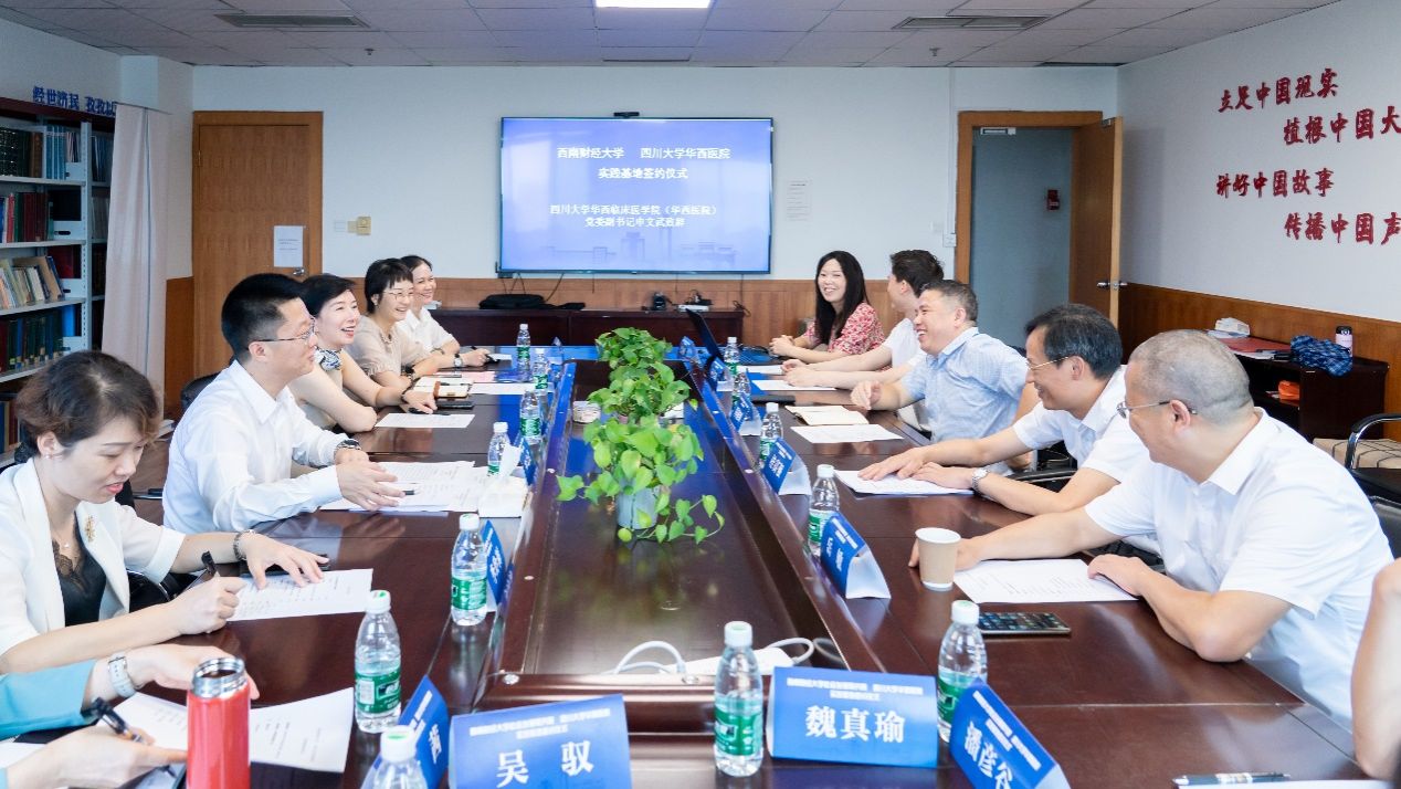 社会发展研究院相关负责人介绍了双方下一步合作方向及内容。随后,双方进行实习基地签约仪式,桂富强向四川大学华西医院授牌。