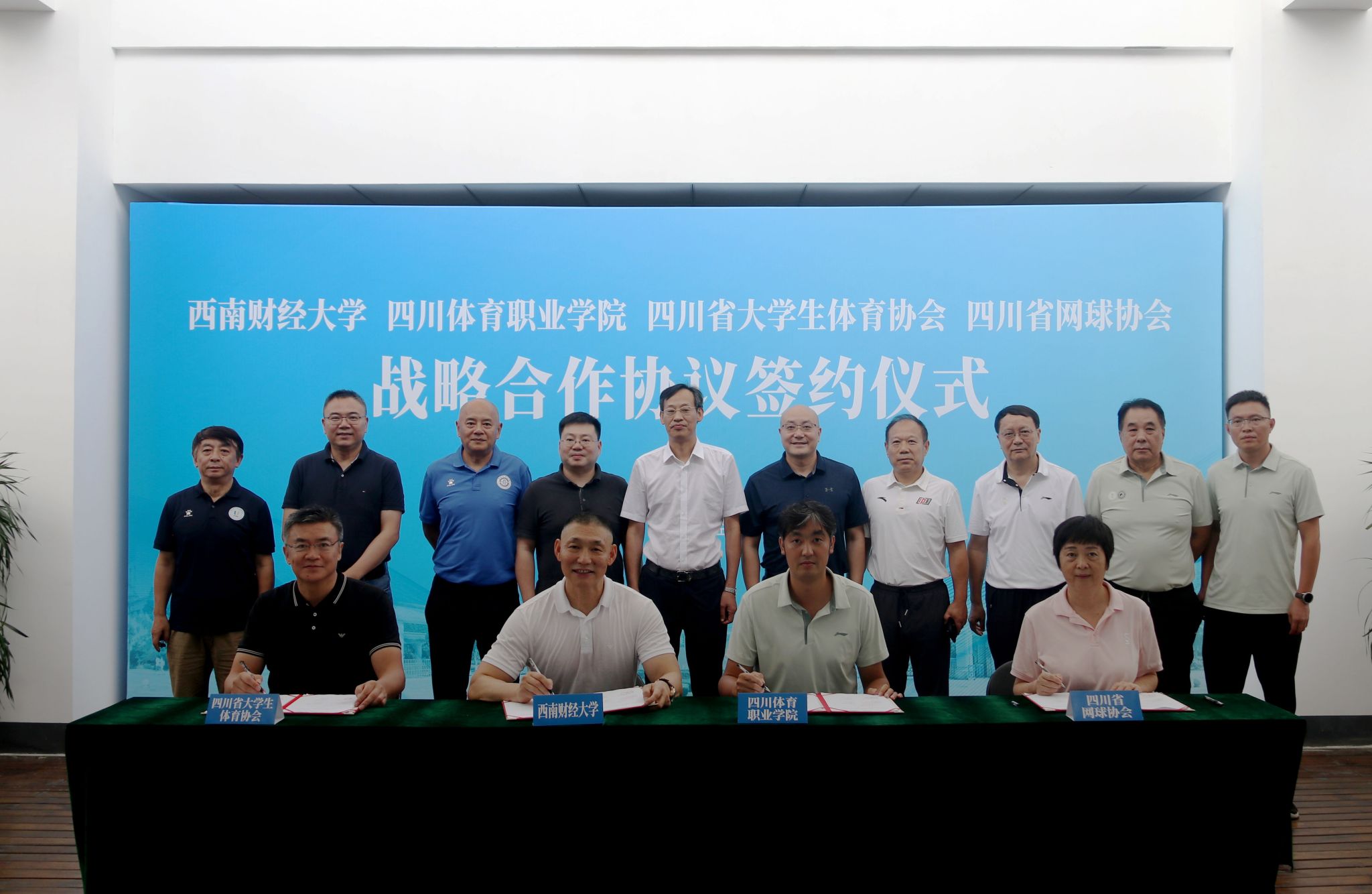 7月19日,学校与四川体育职业学院、四川省网球协会、四川省大学生体育协会四方战略合作协议签约仪式在光华校区体育馆举行。四川体育职业学院党委副书记刘汉权,四川省大学生体育协会秘书长刘江,四川省网球协会会长罗茂乡以及四川省网球运动管理中心、四川省大学生体育协会和四川省网球协会相关负责人;学校党委常委、副校长桂富强,国内合作与发展处、体育学院相关负责人及教师代表参加仪式。