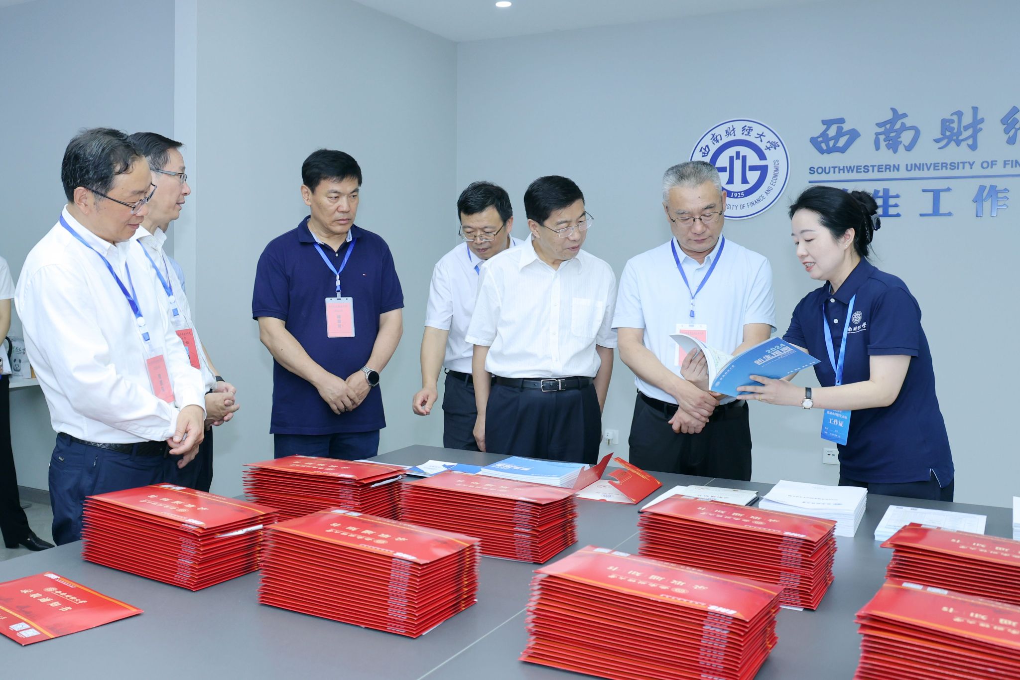 7月23日,省人大常委会党组书记、副主任王雁飞带队到西南财经大学2024年普通本科招生录取工作现场,调研视察我校录取工作并看望慰问招生录取工作人员。省人大常委会党组副书记、副主任罗强,省人大常委会副主任何延政,省委教育工委副书记陈朝先,省委教育工委委员、省教育考试院党委书记、院长李志刚等随同调研。西南财经大学党委书记赵建军,党委副书记、校长李永强,党委副书记明海峰陪同调研。