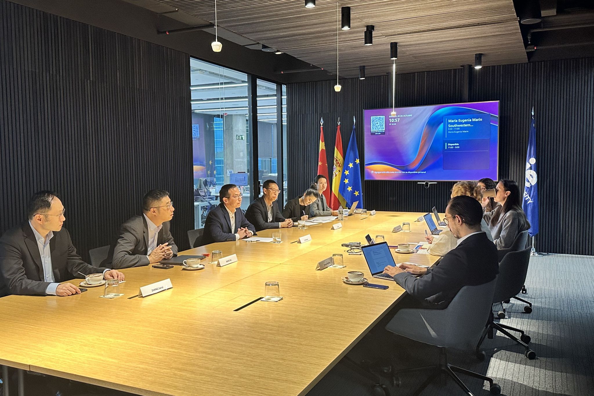 在西班牙,李志生一行访问西班牙IE大学,与副教务长玛丽亚·尤金妮娅·马林(Maria-Eugenia Marin)、全球国际事务、亚太地区事务等相关负责人会谈。李志生介绍了学校历史沿革、发展近况与“新财经”战略,表示两校均以商科见长,发展契合度高、合作前景广阔,希望未来在学生交换、短期游学、研究生学位项目等方面开展合作。玛丽亚·尤金妮娅·马林介绍了IE大学基本概况、项目类型及对中合作情况,表示学校高度重视与中国高校交流合作,希望与西南财大在大数据与人工智能、金融科技等领域深入合作。会上,双方就学生交换、学位项目合作达成合作意向。