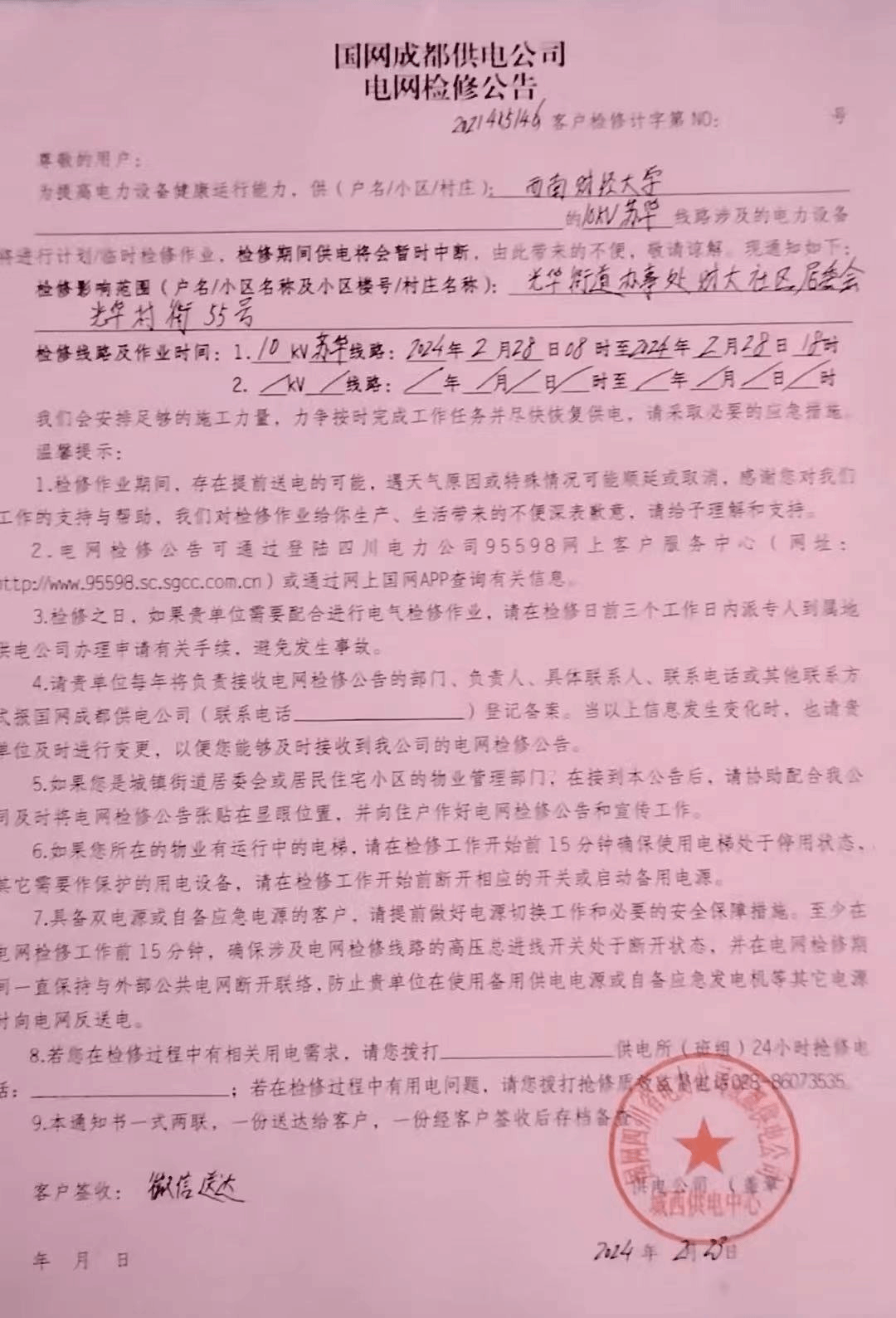 2.停电区域:光华全校区。