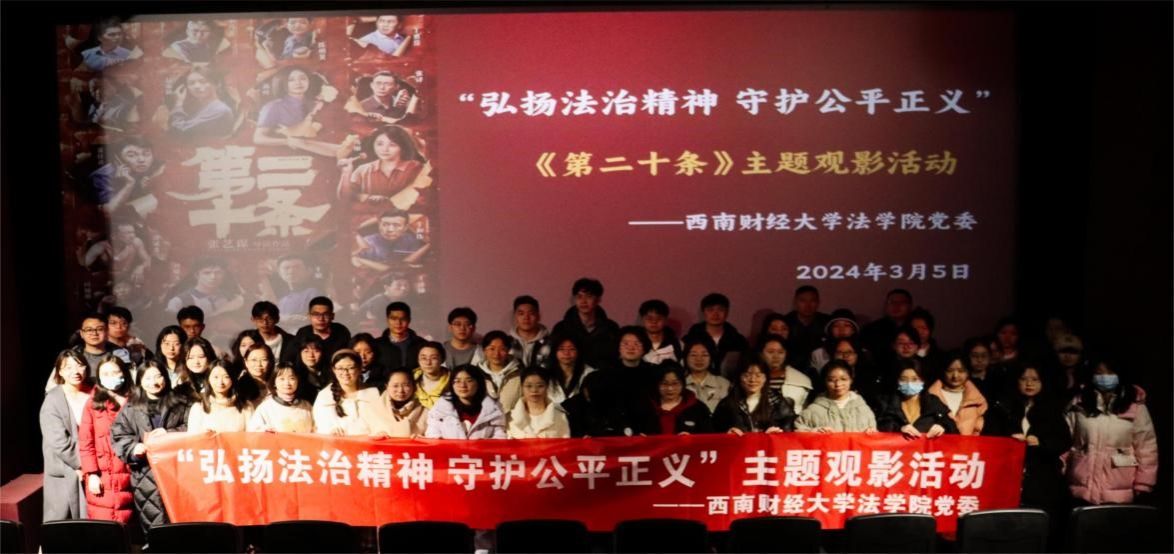 3月5日下午,法学院党委组织师生60余人集中观看电影《第二十条》,开展沉浸式职业教育和党性教育,弘扬法治精神。