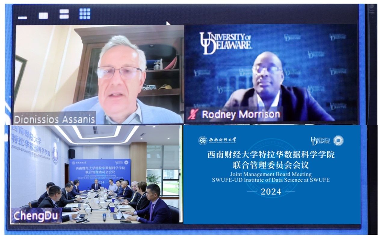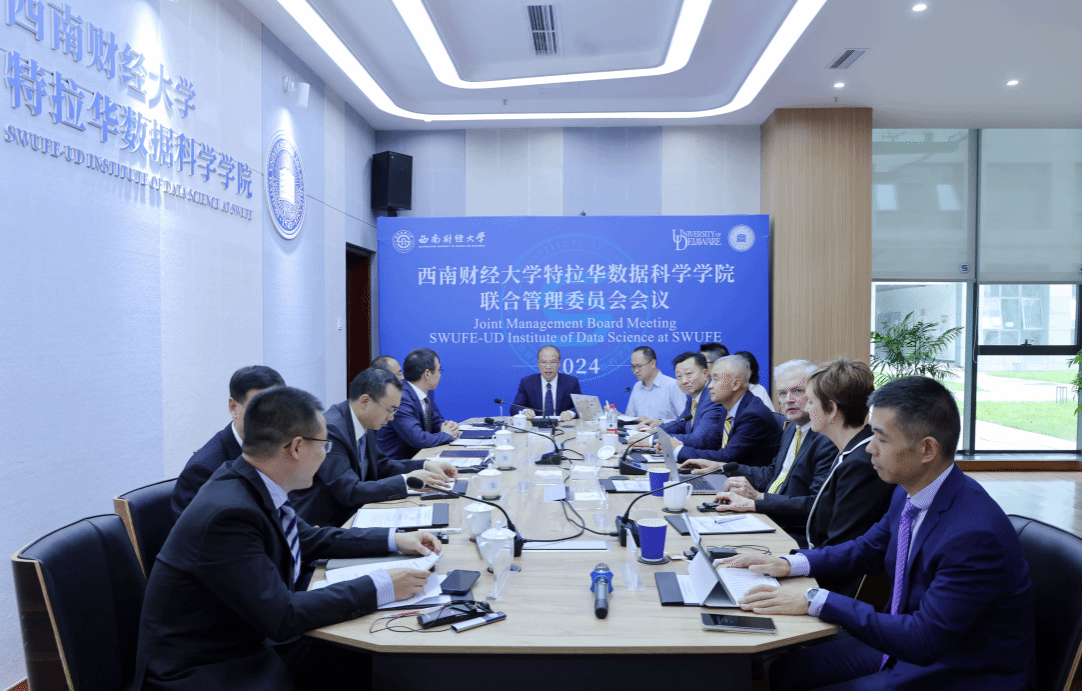 6月19日上午,西南财经大学特拉华数据科学学院联合管理委员会召开2023-2024学年工作会议。西南财经大学党委副书记、校长、联合管理委员会主席李永强,党委常委、副校长李志生,党委常委、副校长马永强,特拉华大学校长、联合管理委员会副主席Dennis Assanis,副校长Rodney Morrison,两校联合管理委员会委员以及列席代表出席会议。会议由特拉华数据科学学院院长杨石磊主持。